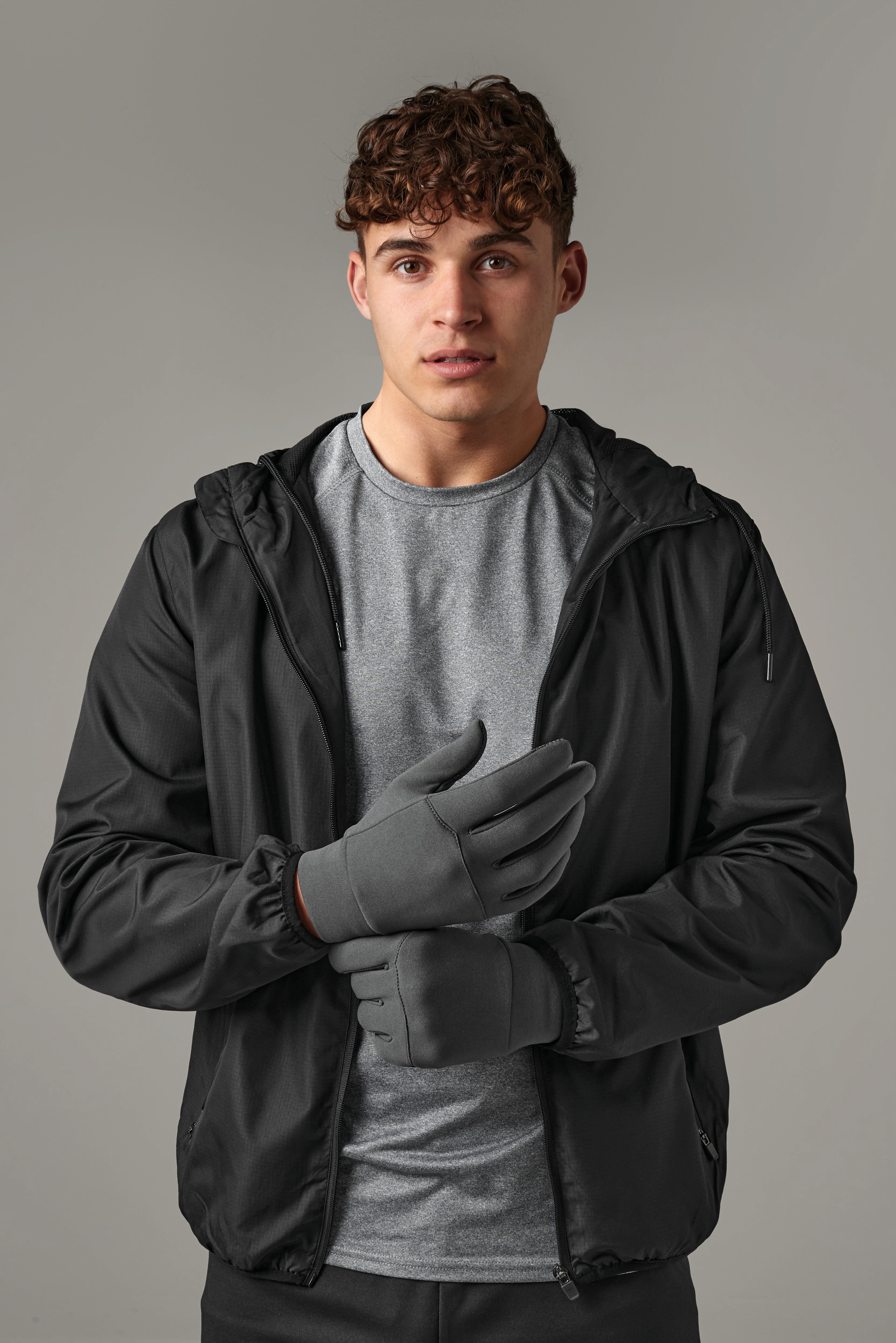 93% Polyester/7% Elastane. Lightweight wind breaker. Quick drying. Breathable Softshell fabric. Compatible with touchscreen devices. Ergonomic cut.